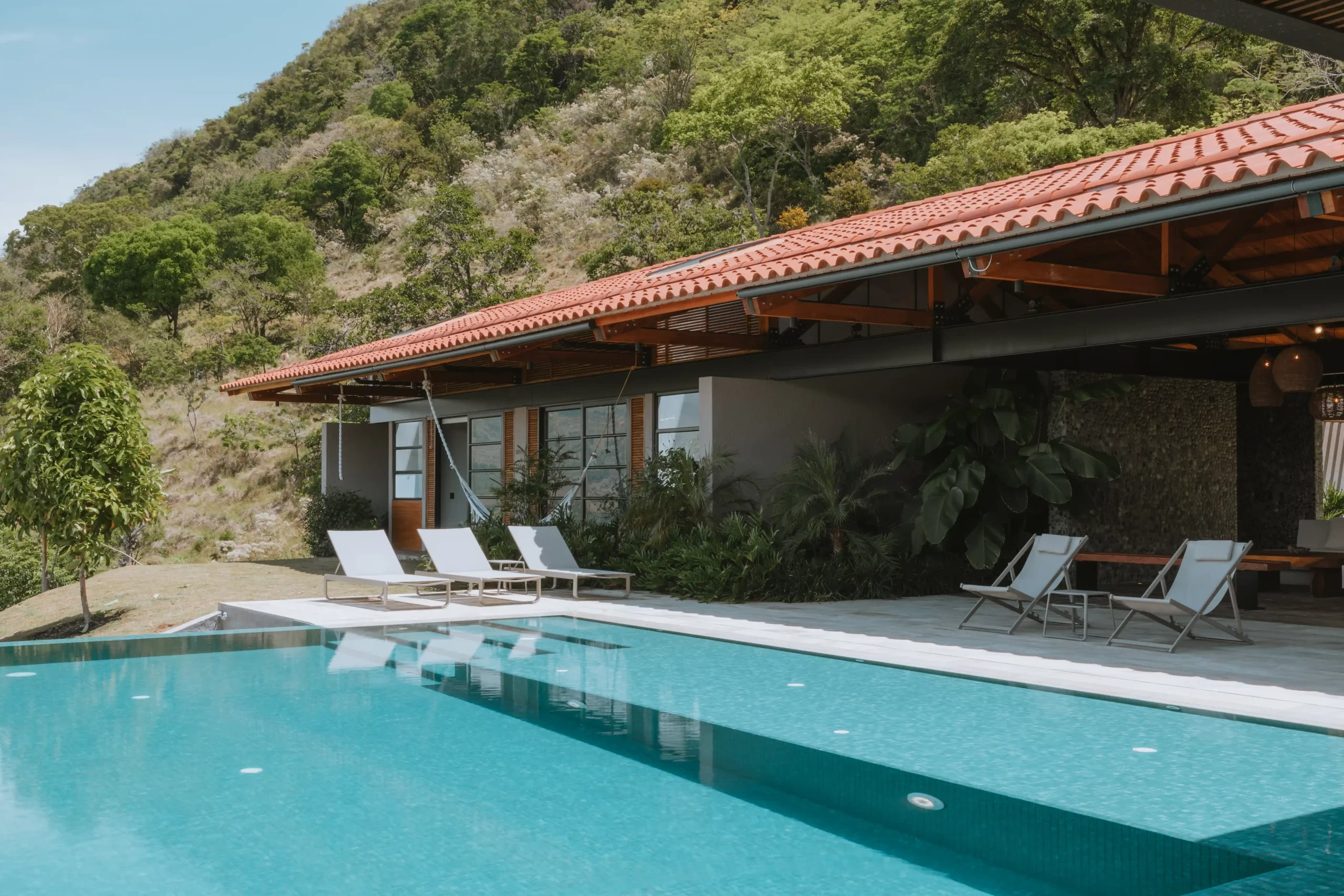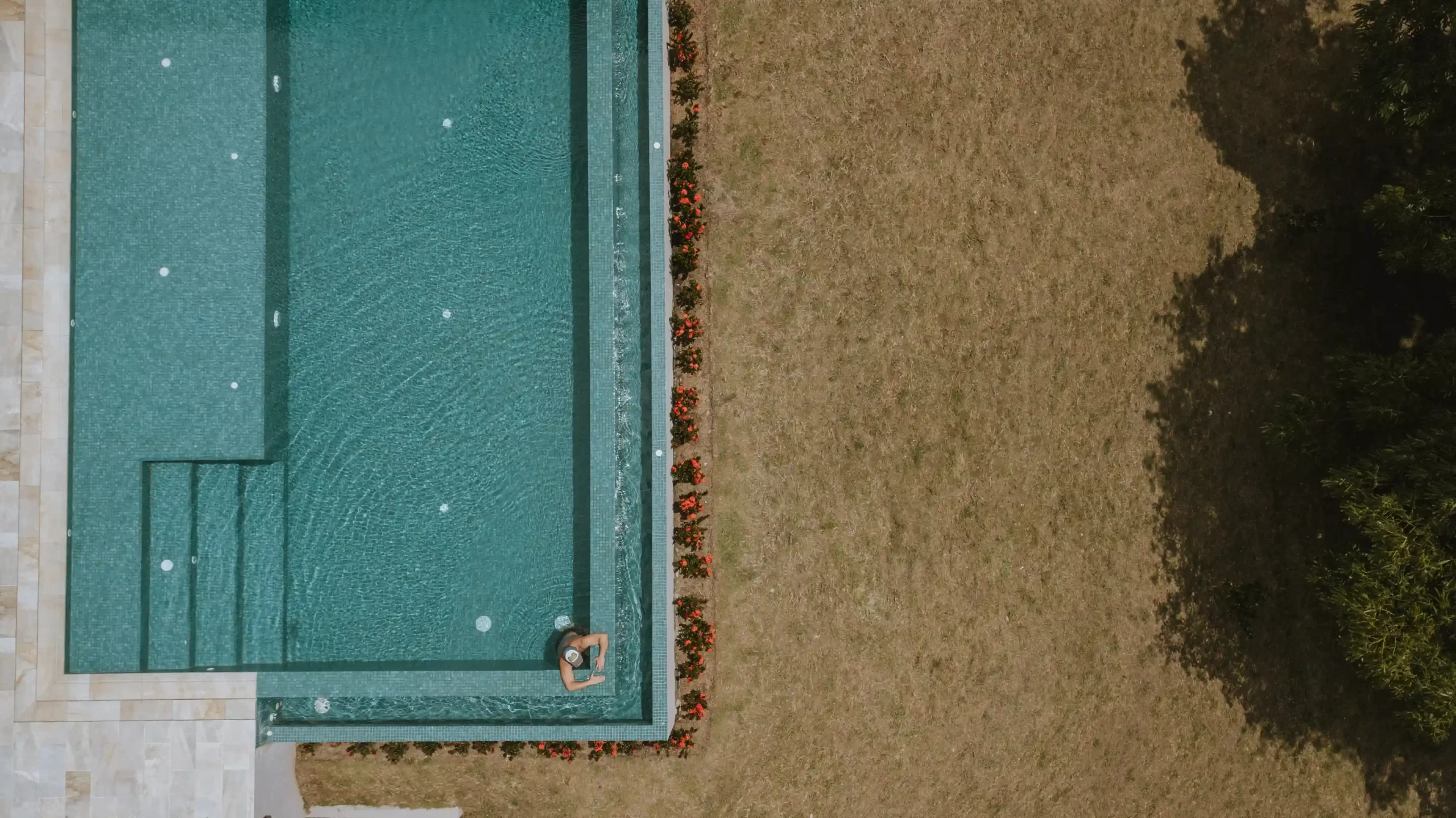 Un espejo de agua que abraza el paisaje. El mosaico vítreo verde y el porcelanato crean una atmósfera fresca y acogedora, mientras que el spa con cañón se convierte en el rincón perfecto para desconectarse entre las montañas.