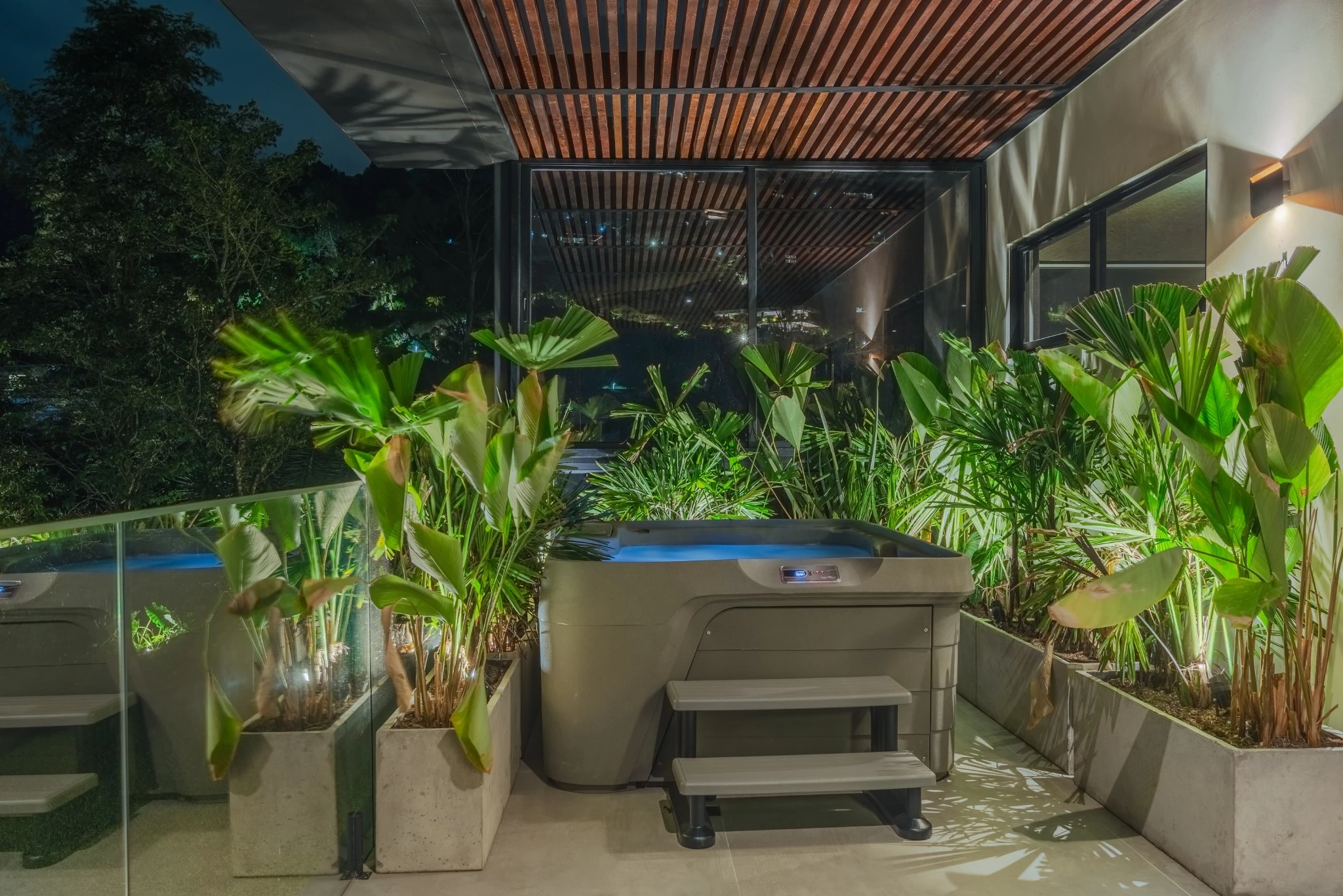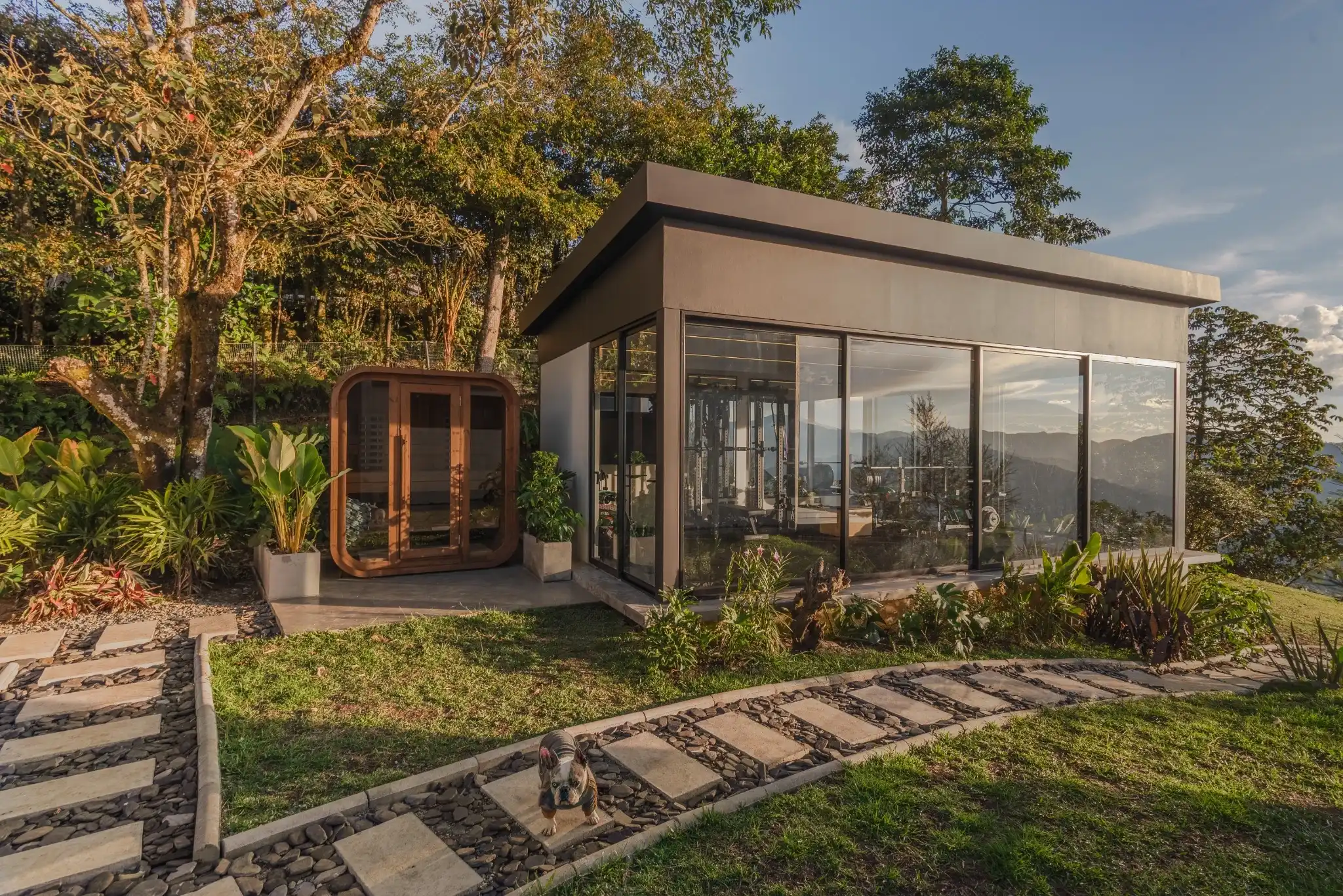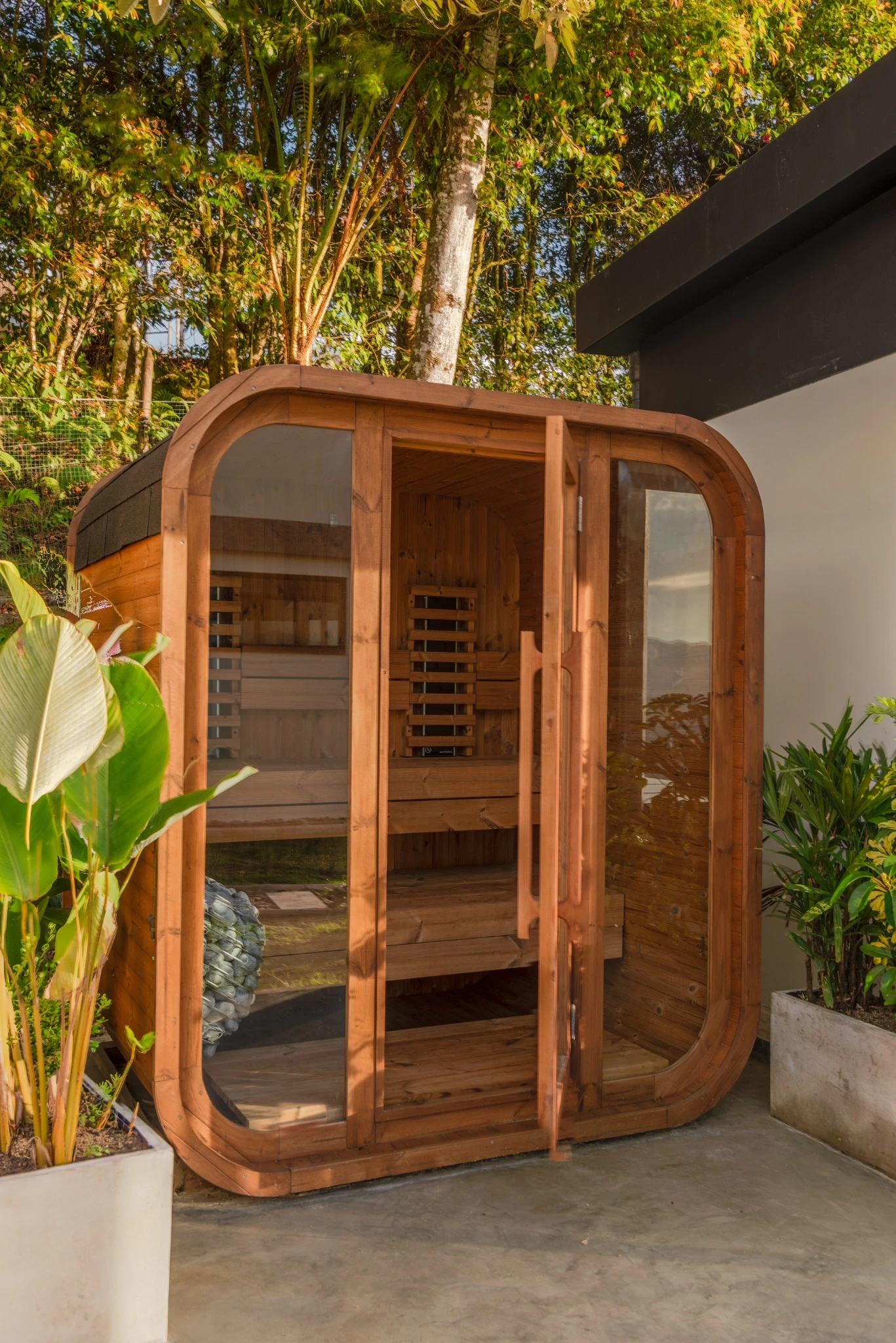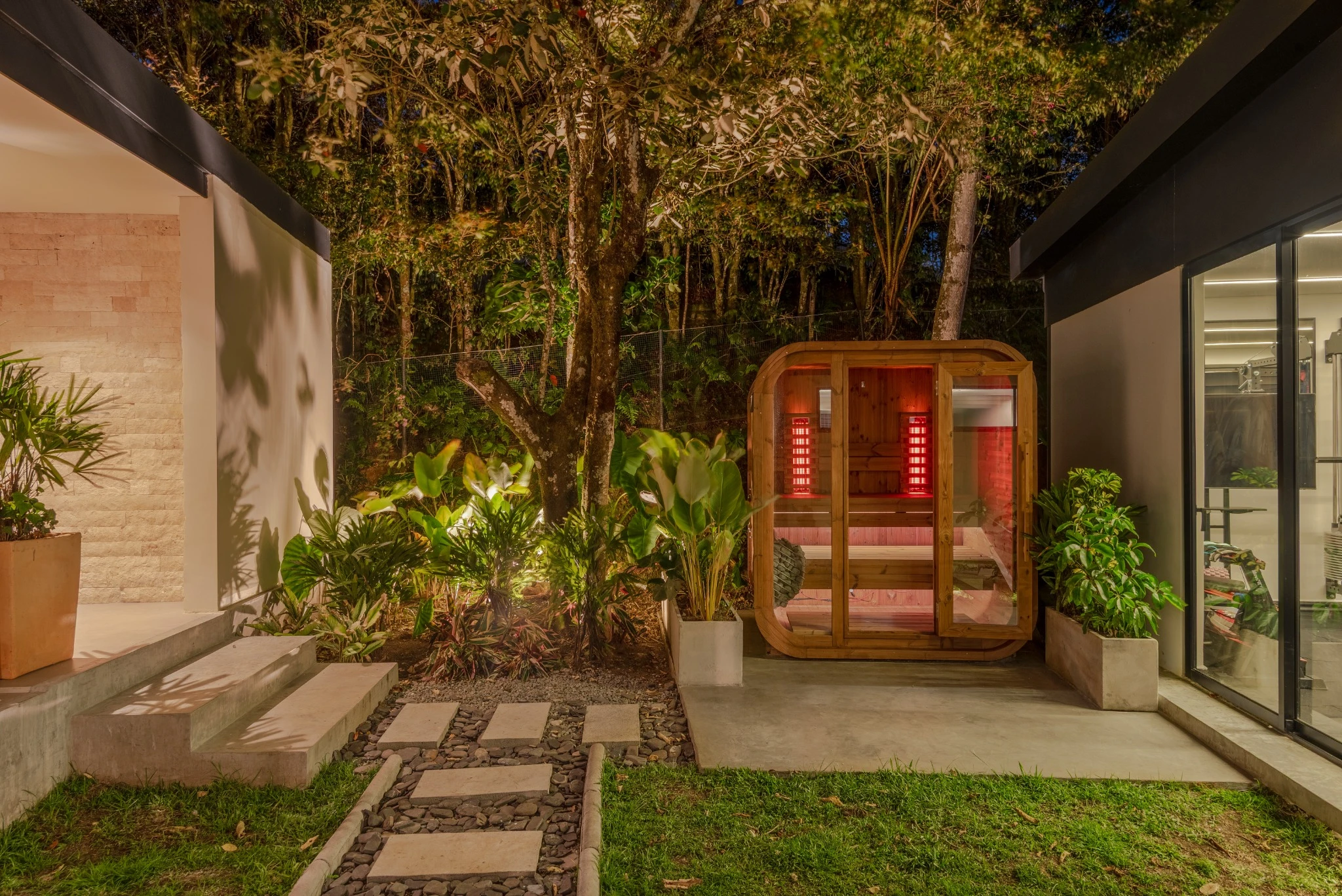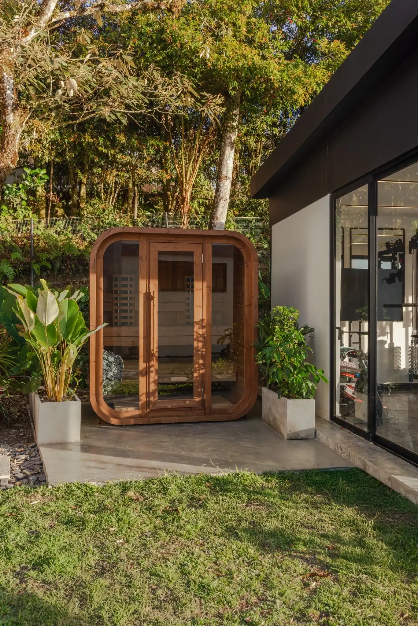 Este sauna cabina híbrido con tecnología infrarroja y maderas europeas se integra junto al gimnasio privado, creando la combinación perfecta para recuperar el cuerpo y la mente después de entrenar. Un ritual de descanso rodeado de naturaleza y vistas incomparables.